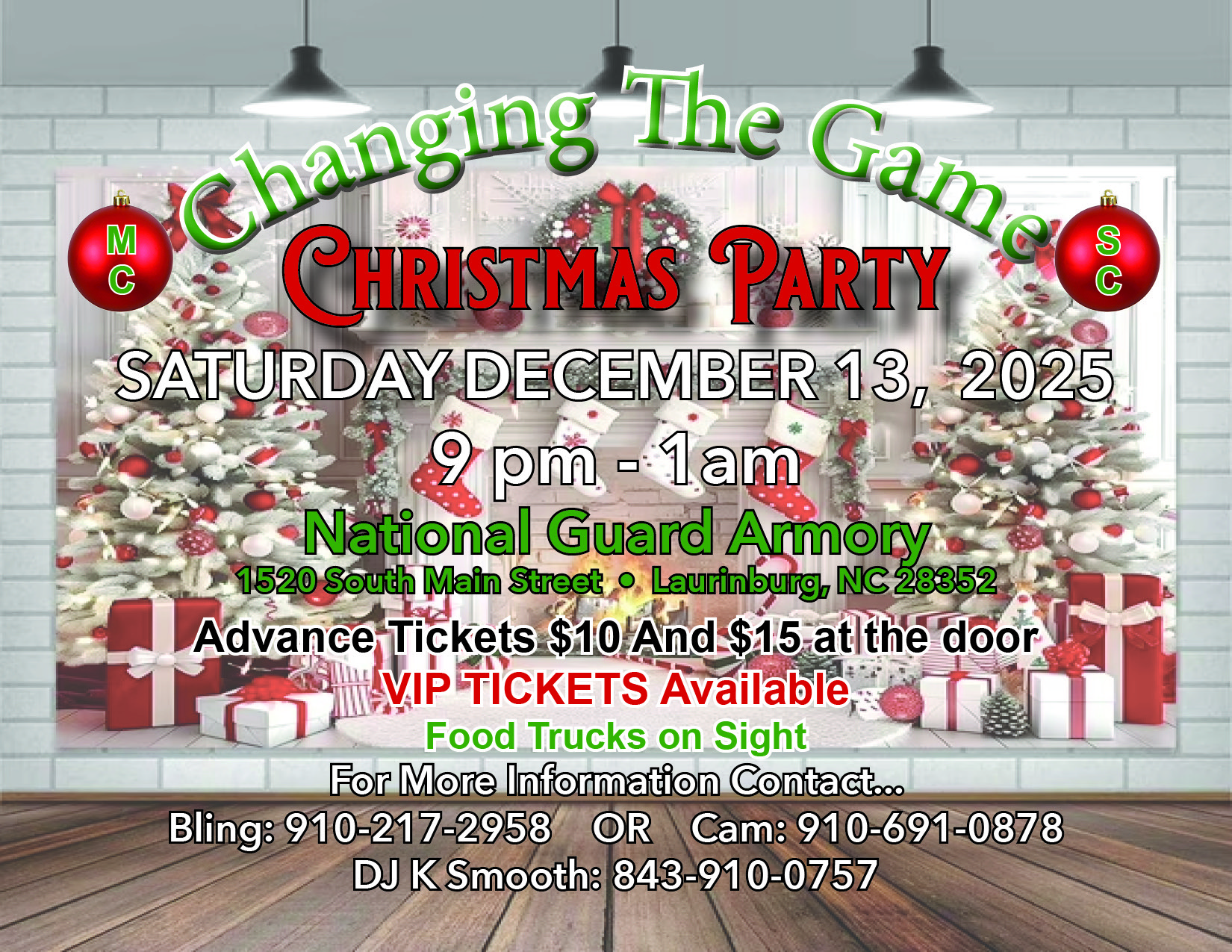 Ladies and Gentlemen! If you missed the CTG Anniversary Party back in September, you definitely missed one of if not the biggest, most lit parties of the year!! So many people were demanding more! So we are back with another classic! Come dressed to impress with your best dancing shoes on as we take you on a musical old and new school ride! Advance tickets just $10! $15 at the door! Security and metal detection strictly enforced! Good food, good drinks, good people, good vibes! For all other inquiries contact Bling at 910-217-2958, Cam at 910-601-0878, or DJ KSmooth at 843-910-0757! South Carolina, North Carolina, and beyond, SPREAD THE WORD!!!